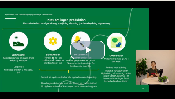 Webinaret indeholder følgende oplæg: Velkomst ved vicedirektør Peter Have). Midlertidig ekstensivering. Permanent ekstensivering. Skovrejsning og minivådområder. Vådområder og lavbund. Sammenhæng mellem udtagningsindsatsen og kvælstofreguleringen. Særligt om tilskudsordningen ’midlertidig ekstensivering’, trappemodel og hensigtserklæringer i MARS